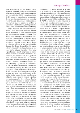 muestran incrementos en estas enzimas, la bibliografía en deportistas, evidenciándo-