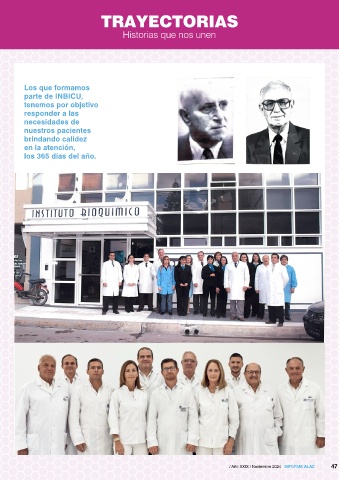 Los que formamos parte de INBICU, tenemos por objetivo responder a las necesidades de nuestros pacientes brindando calidez en la atención, los 365 días del año. / Año XXIX / Noviembre 2024 INFORME ALAC 47