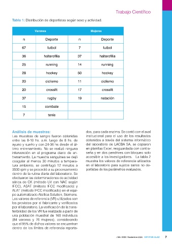 Tabla 1: Distribución de deportistas según sexo y actividad.